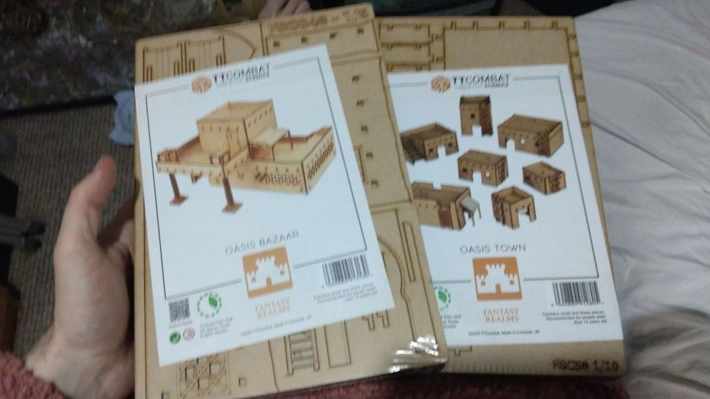 I began working on some poor hammer terrain, both Sci-Fi and Fantasy terrain. I also built up these nice MDF Oasis town and Oasis Bazaar kits from TTcombat.