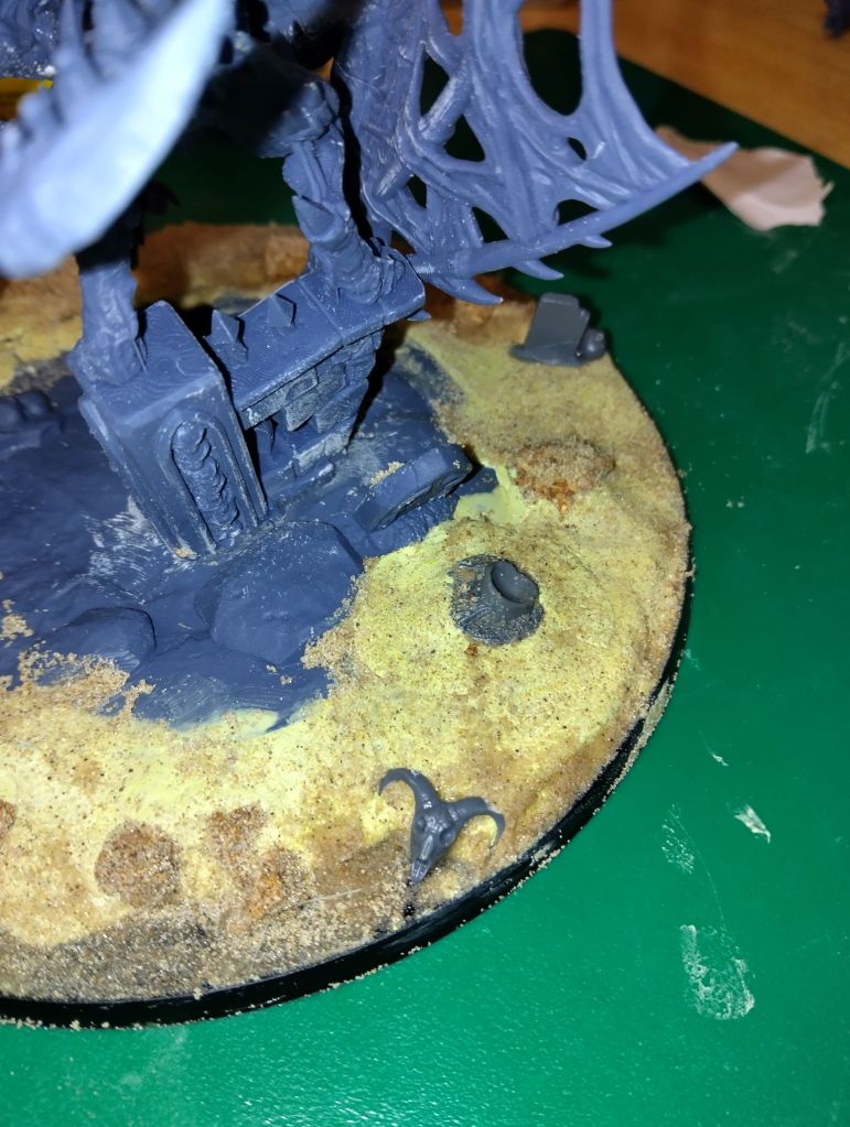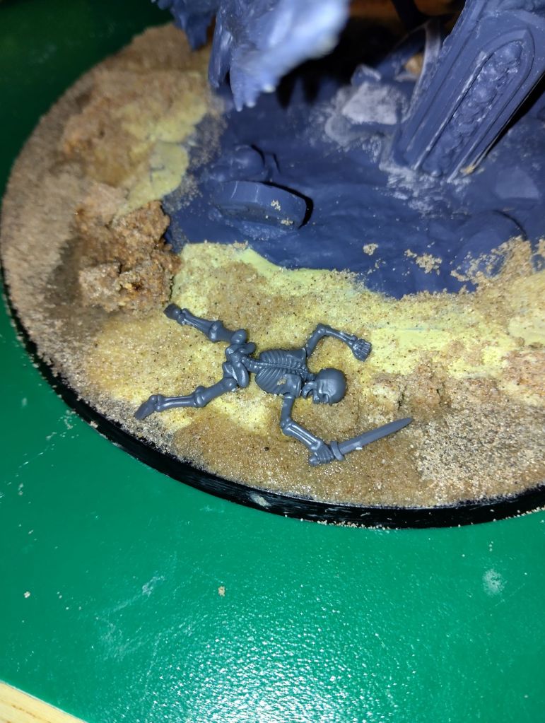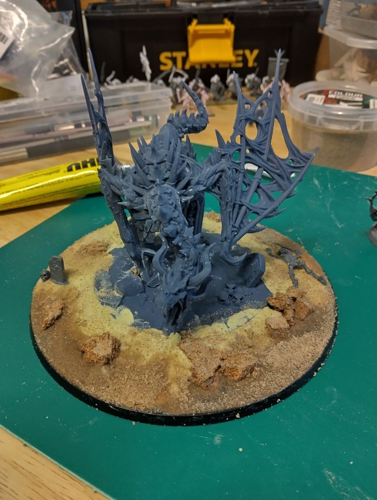 I have based up this cool proxy Zombie Dragon, designed by Artisan Guild, for my Soulblight Gravelords army. It was messy, with smudges of glue and milliput everywhere, but I got stuck in. Really pleased with how it’s turning out.