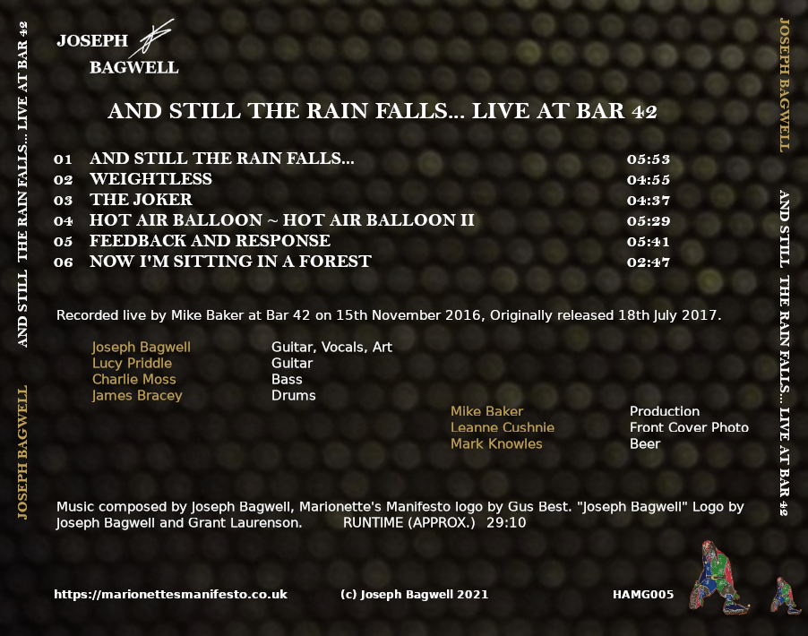 Joseph Bagwell (Vocals, Guitar, Artwork), Lucy Priddle (Guitar), Charlie Moss (Bass), James Bracey (Drums). Recorded and Produced by Mike Baker. Front cover photo by Leanne Cushnie. Beer provided by Mark Knowles.