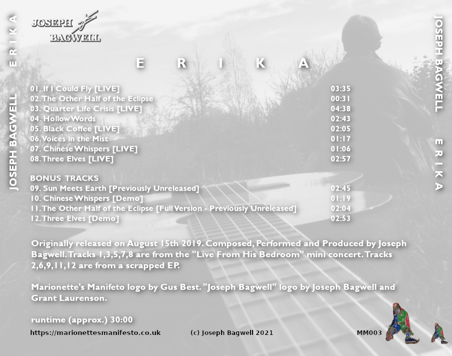 Tracks 1,3,5,7 and 8 are from the “Live From His Bedroom” video. Track 2,6,9,11 and 12 are outtakes from a scrapped EP.